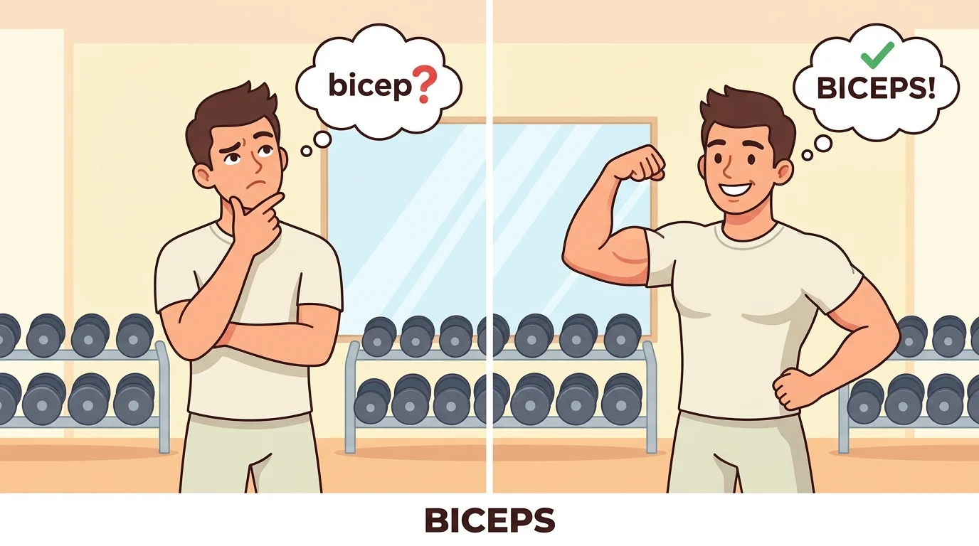 You just finished a hard workout. Your arms feel like jelly. You want to tell your friend, “My ___ is sore.” But you stop. Do you say bicep or biceps? You are not alone.